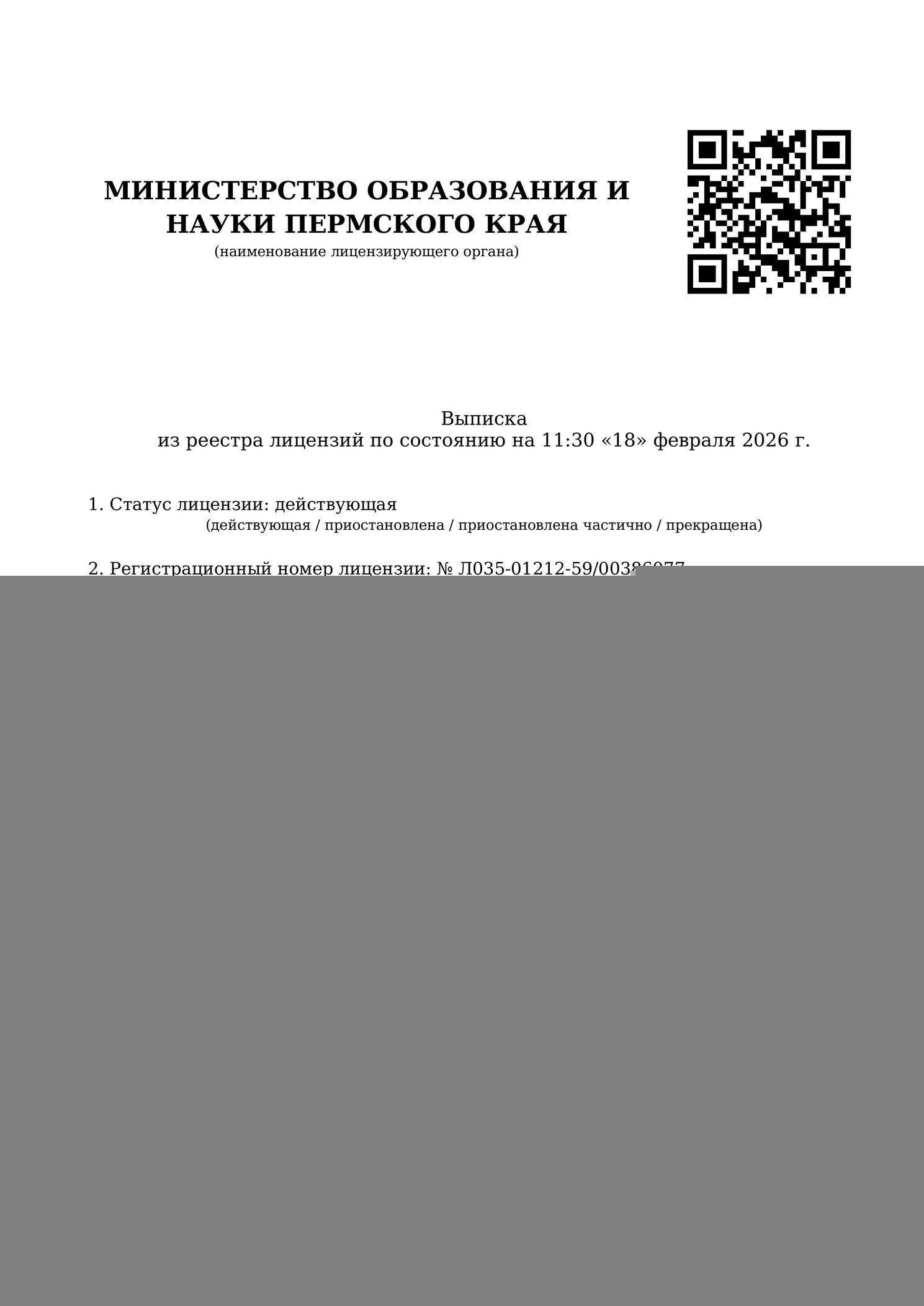 Лицензия на осуществление образовательной деятельности № Л035-01212-59/00386077
