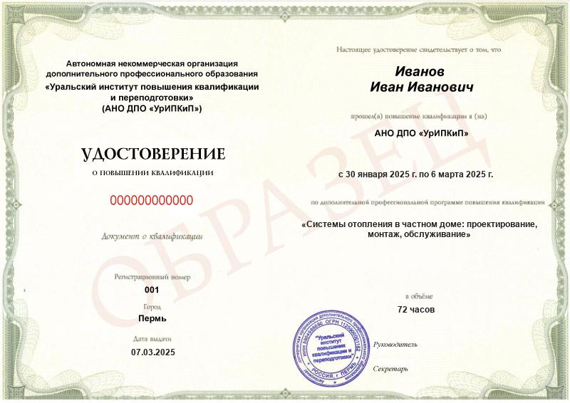 Системы отопления в частном доме: проектирование, монтаж, обслуживание (72ч)